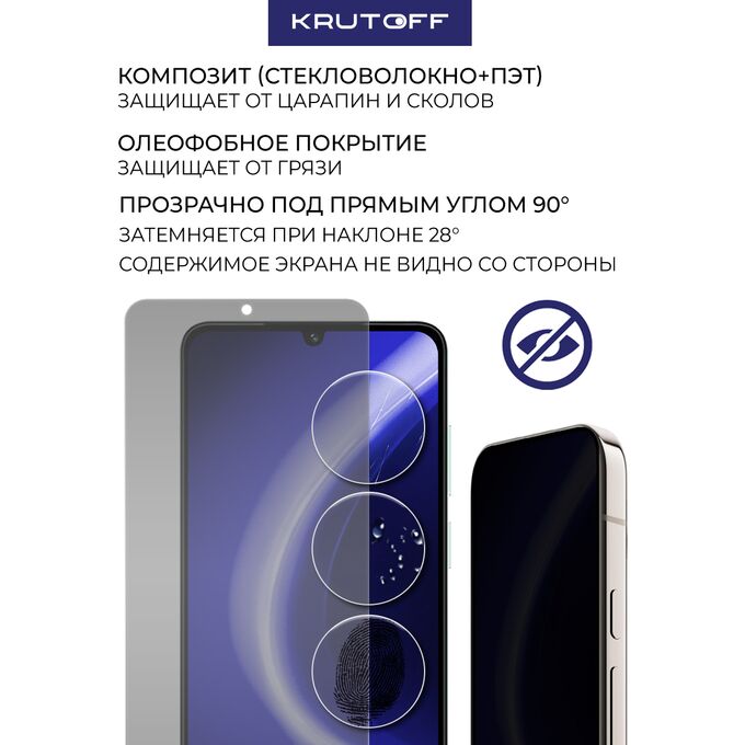 Сохранив гибкость защитной пленки, гибридное стекло намного удобнее обычного закаленного стекла - как при транспортировке, так и при установке. Оно тоньше, прочнее и надежно защищает экран от повреждений. Стекло антишпион не только защитит телефон от механических повреждений, но и скроет экран вашего смартфона от любопытных взглядов. Благодаря специальному свойству, изображение на экране видно только под прямым углом. Со стороны экран будет выглядеть как при выключенном дисплее. Стекло имеет отступы по 1 мм от края дисплея для удобства ношения защитного чехла. Имеет высокую степень устойчивости к царапинам, обеспечивает хорошую чувствительность к касанию и не влияет на сенсорный отклик по всей поверхности дисплея. Гибридное стекло идеально прозрачное, не снижает четкость и яркость изображения, не меняет оригинальную цветопередачу экрана. Изготовлено из гибкого композиционного материала (стекловолокно и ПЭТ). Является гибким и не растрескивается, а края не крошатся, как у обычного закаленного стекла. Защищает от пыли, грязи, брызг и царапин. Верхний слой из стекловолокна по тактильным ощущениям близок к стеклу и не влияет на работу сенсора по всей поверхности экрана. Полная проклейка поверхности (Full Glue). Специальная смесь высококачественных клеев гарантирует установку без пузырьков воздуха и что стекло не отслоится с течением времени. Внимание! Гибридное стекло поставляется в двух защитных транспортировочных пленках (на тыльной и лицевой стороне). Данные пленки могут быть поцарапаны. После наклеивания стекла снимите защитную синюю пленку "2" с лицевой стороны!