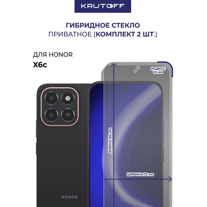 Комплект из 2-х защитных гибридных стекол Антишпион Krutoff для Honor X6с