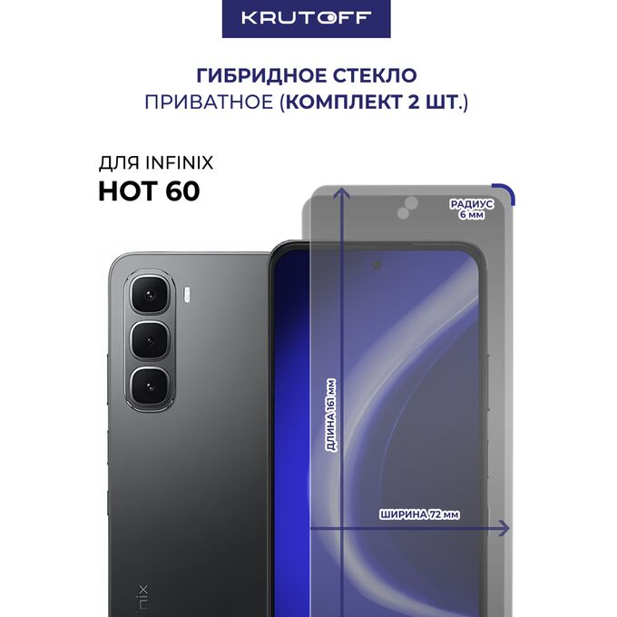 Комплект из 2-х защитных гибридных стекол Антишпион Krutoff для INFINIX Hot 60