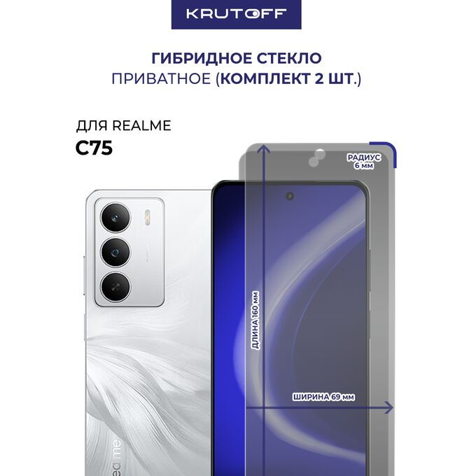 Комплект из 2-х защитных гибридных стекол Антишпион Krutoff для Realme C75
