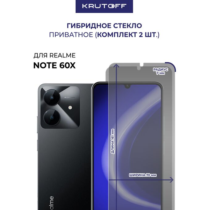 Комплект из 2-х защитных гибридных стекол Антишпион Krutoff для Realme Note 60X