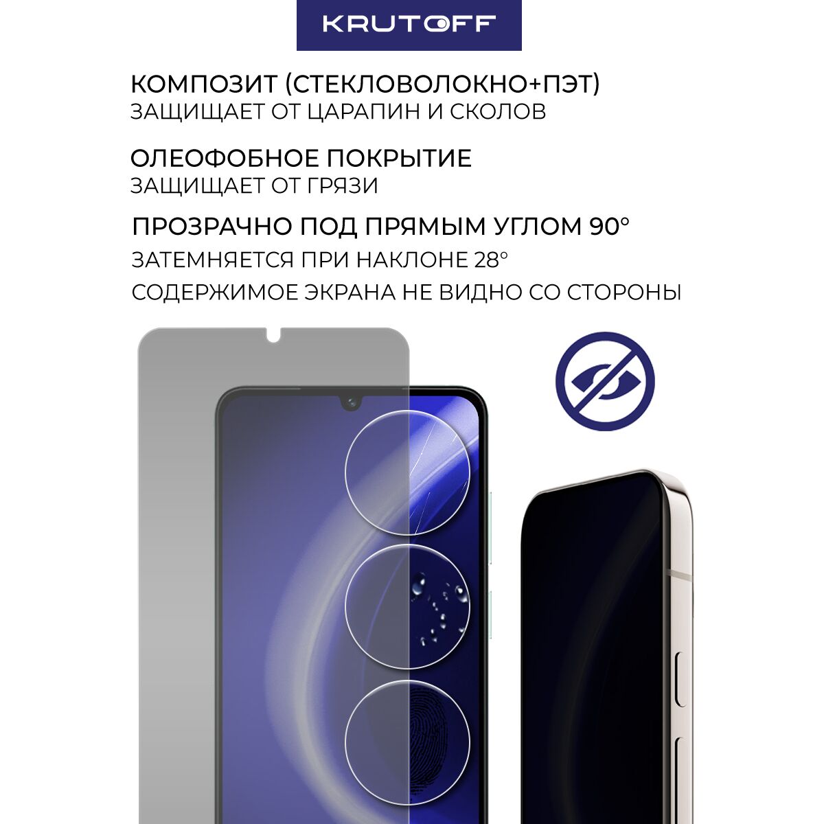 Сохранив гибкость защитной пленки, гибридное стекло намного удобнее обычного закаленного стекла - как при транспортировке, так и при установке. Оно тоньше, прочнее и надежно защищает экран от повреждений. Стекло антишпион не только защитит телефон от механических повреждений, но и скроет экран вашего смартфона от любопытных взглядов. Благодаря специальному свойству, изображение на экране видно только под прямым углом. Со стороны экран будет выглядеть как при выключенном дисплее. Стекло имеет отступы по 1 мм от края дисплея для удобства ношения защитного чехла. Имеет высокую степень устойчивости к царапинам, обеспечивает хорошую чувствительность к касанию и не влияет на сенсорный отклик по всей поверхности дисплея. Гибридное стекло идеально прозрачное, не снижает четкость и яркость изображения, не меняет оригинальную цветопередачу экрана. Изготовлено из гибкого композиционного материала (стекловолокно и ПЭТ). Является гибким и не растрескивается, а края не крошатся, как у обычного закаленного стекла. Защищает от пыли, грязи, брызг и царапин. Верхний слой из стекловолокна по тактильным ощущениям близок к стеклу и не влияет на работу сенсора по всей поверхности экрана. Полная проклейка поверхности (Full Glue). Специальная смесь высококачественных клеев гарантирует установку без пузырьков воздуха и что стекло не отслоится с течением времени. Внимание! Гибридное стекло поставляется в двух защитных транспортировочных пленках (на тыльной и лицевой стороне). Данные пленки могут быть поцарапаны. После наклеивания стекла снимите защитную синюю пленку "2" с лицевой стороны!