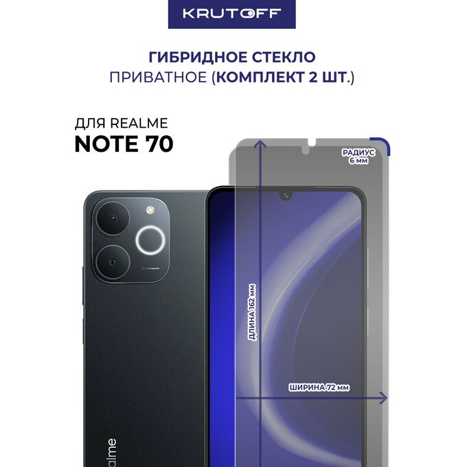 Комплект из 2-х защитных гибридных стекол Антишпион Krutoff для Realme Note 70