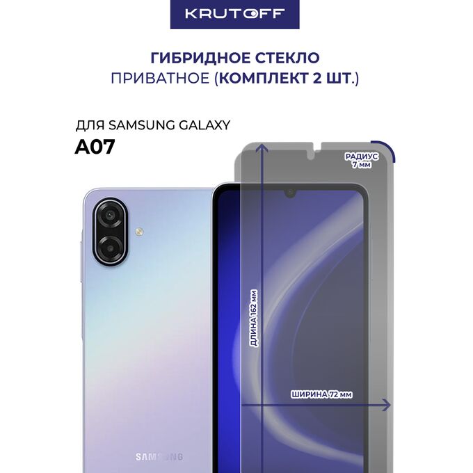 Комплект из 2-х защитных гибридных стекол Антишпион Krutoff для Samsung Galaxy A07