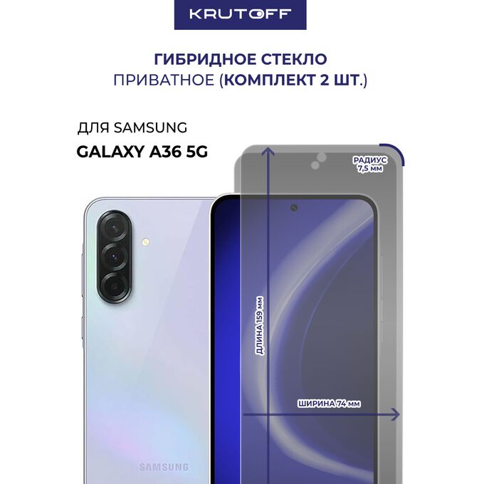 Комплект из 2-х защитных гибридных стекол Антишпион Krutoff для Samsung Galaxy A36 5G (A366)