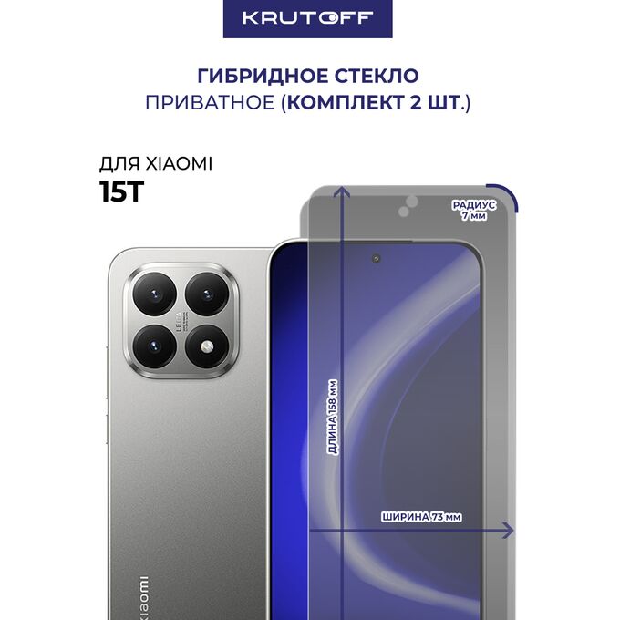 Комплект из 2-х защитных гибридных стекол Антишпион Krutoff для Xiaomi 15T