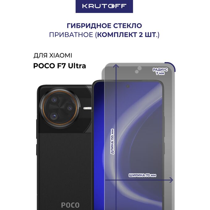 Комплект из 2-х защитных гибридных стекол Антишпион Krutoff для Xiaomi POCO F7 Ultra