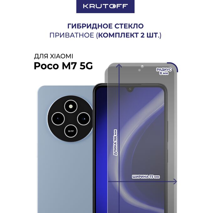 Комплект из 2-х защитных гибридных стекол Антишпион Krutoff для Xiaomi Poco M7 5G