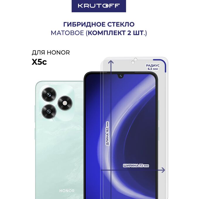 Комплект из 2-х защитных гибридных стекол МАТОВЫХ Krutoff для Honor X5с