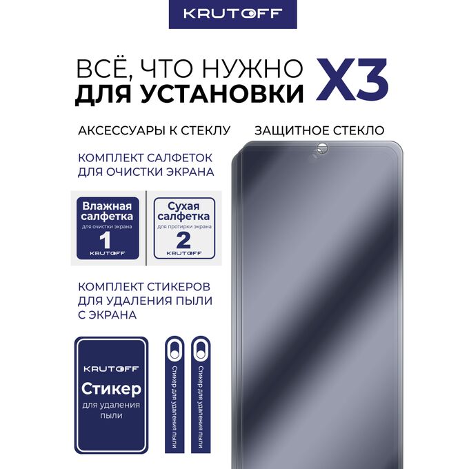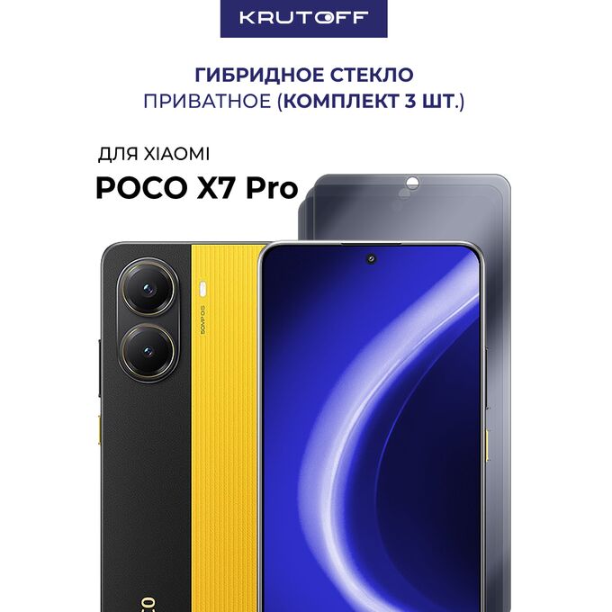 Комплект из 3-х защитных гибридных стекол Антишпион Krutoff для Xiaomi POCO X7 Pro