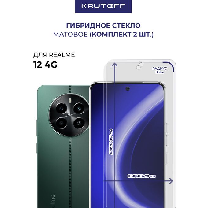 Комплект из 2-х защитных гибридных стекол МАТОВЫХ Krutoff для Realme 12 4G