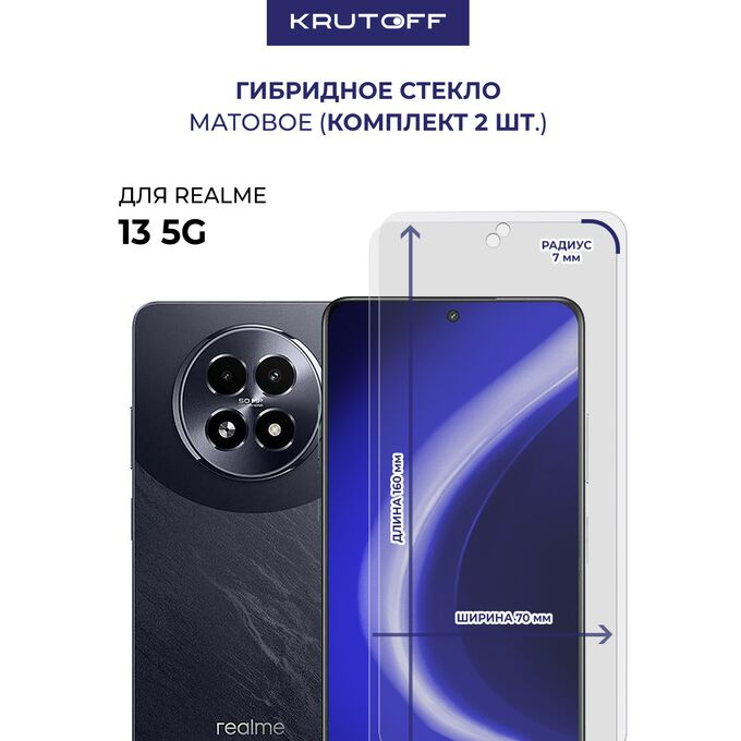 Комплект из 2-х защитных гибридных стекол МАТОВЫХ Krutoff для Realme 13 5G