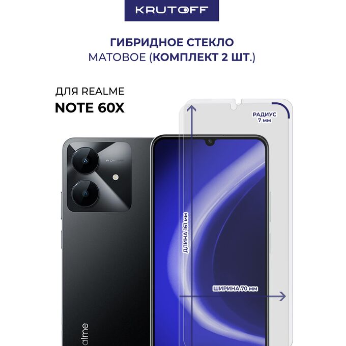 Комплект из 2-х защитных гибридных стекол МАТОВЫХ Krutoff для Realme Note 60X