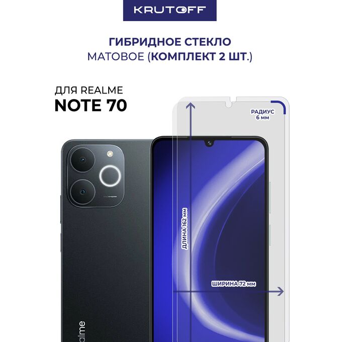 Комплект из 2-х защитных гибридных стекол МАТОВЫХ Krutoff для Realme Note 70