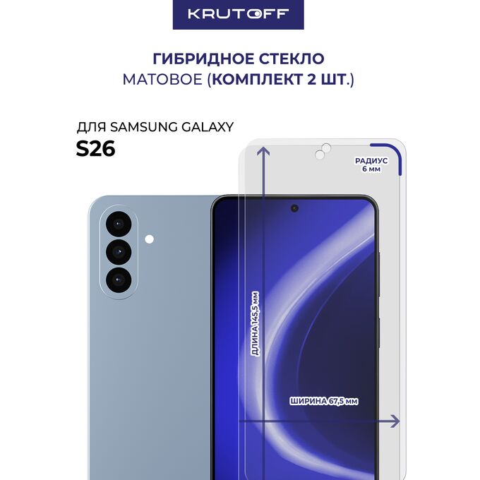 Комплект из 2-х защитных гибридных стекол МАТОВЫХ Krutoff для Samsung Galaxy S26