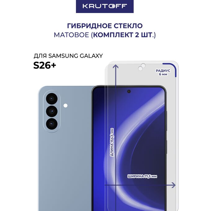 Комплект из 2-х защитных гибридных стекол МАТОВЫХ Krutoff для Samsung Galaxy S26+