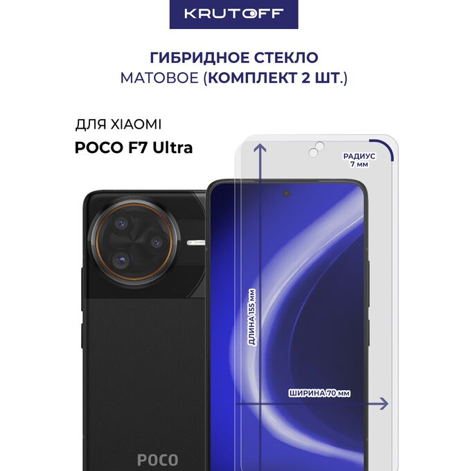 Комплект из 2-х защитных гибридных стекол МАТОВЫХ Krutoff для Xiaomi POCO F7 Ultra