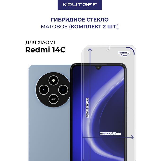 Комплект из 2-х защитных гибридных стекол МАТОВЫХ Krutoff для Xiaomi Redmi 14C