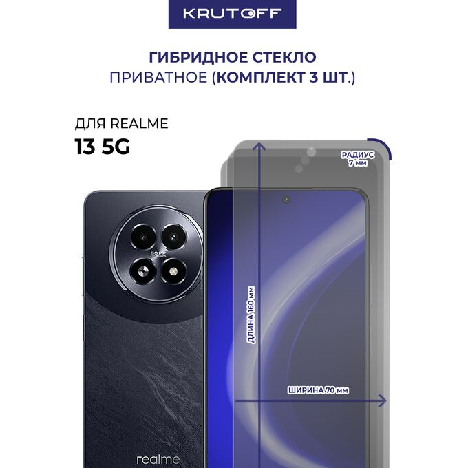 Комплект из 3-х защитных гибридных стекол Антишпион Krutoff для Realme 13 5G