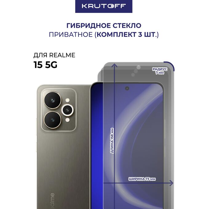 Комплект из 3-х защитных гибридных стекол Антишпион Krutoff для Realme 15 5G