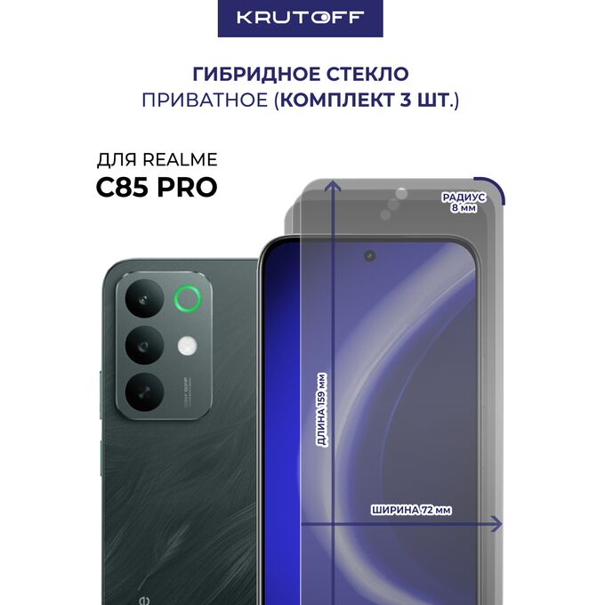 Комплект из 3-х защитных гибридных стекол Антишпион Krutoff для Realme C85 Pro