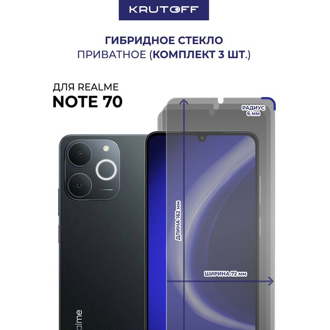 Комплект из 3-х защитных гибридных стекол Антишпион Krutoff для Realme Note 70