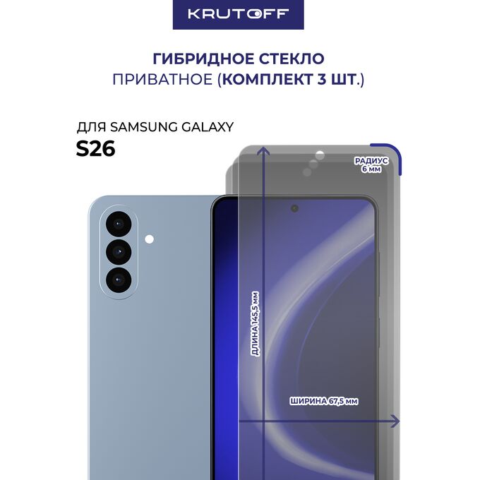 Комплект из 3-х защитных гибридных стекол Антишпион Krutoff для Samsung Galaxy S26