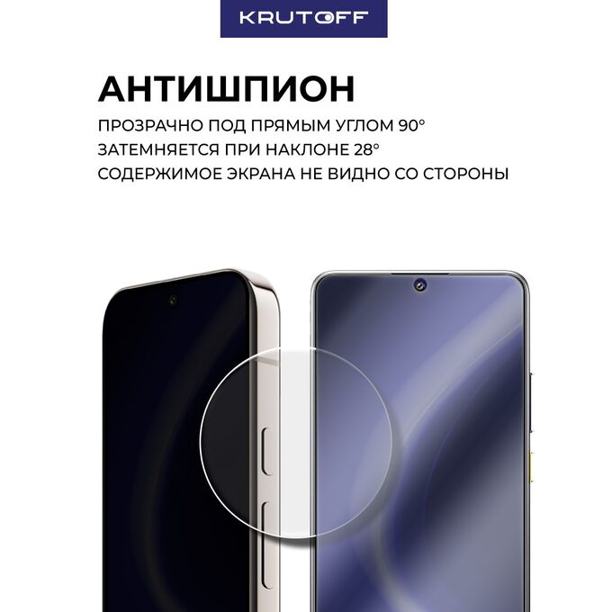 Комплект из 2-х защитных гибридных стекол Антишпион Krutoff для Xiaomi POCO X7 Pro