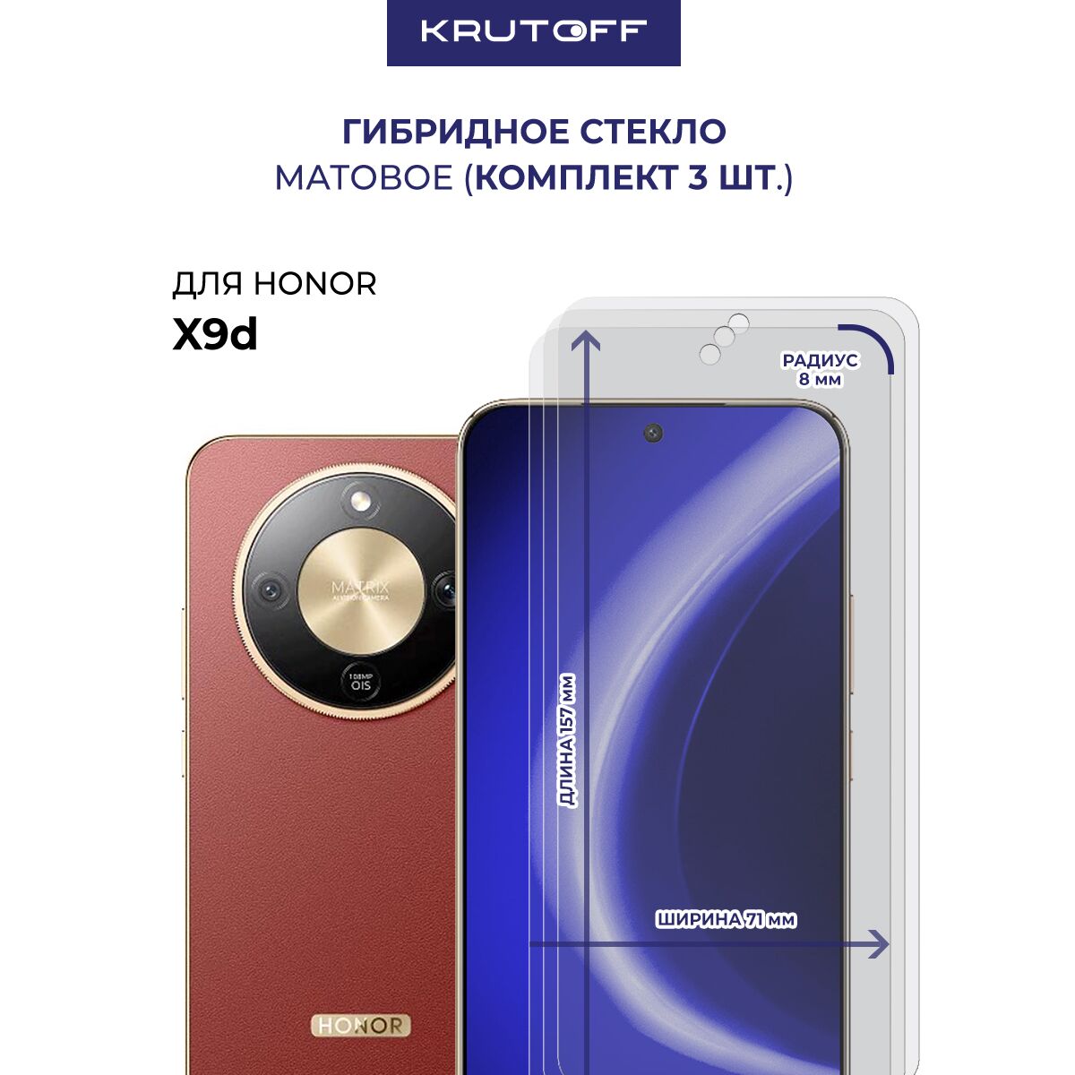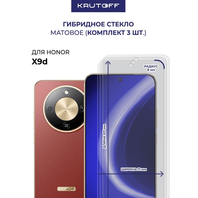 Комплект из 3-х защитных гибридных стекол МАТОВЫХ Krutoff для Honor X9d