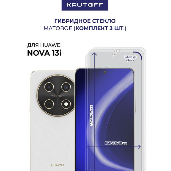 Комплект из 3-х защитных гибридных стекол МАТОВЫХ Krutoff для Huawei Nova 13i