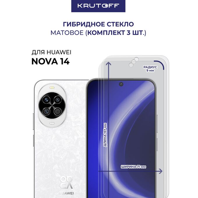 Комплект из 3-х защитных гибридных стекол МАТОВЫХ Krutoff для Huawei Nova 14
