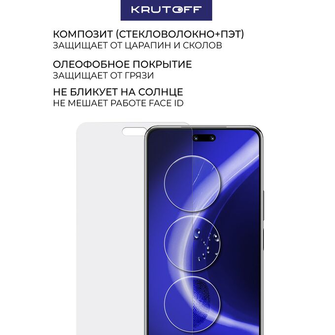 Комплект из 3-х защитных гибридных стекол МАТОВЫХ Krutoff для Huawei Nova 14 Pro