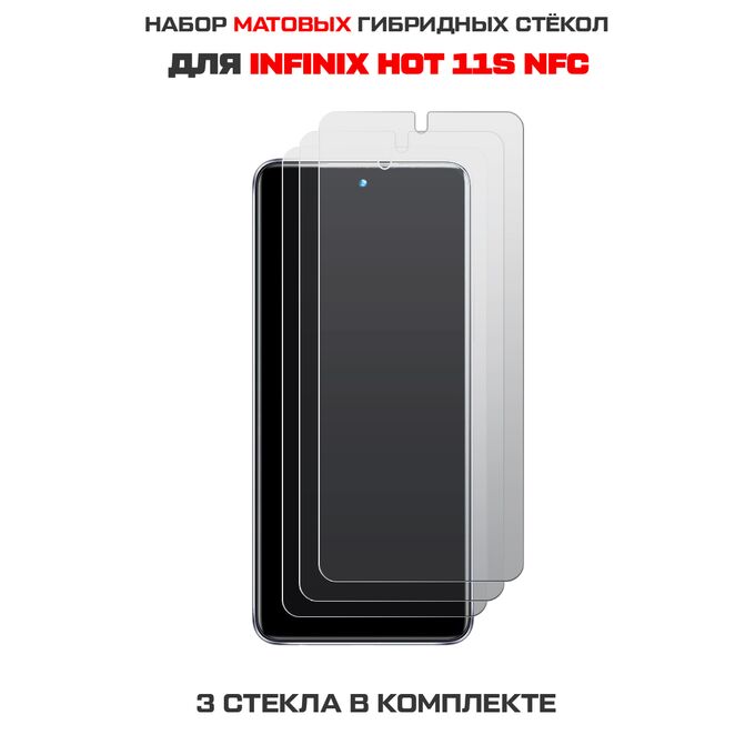 Комплект из 3-х защитных гибридных стекол МАТОВЫХ Krutoff для INFINIX Hot 11S NFC