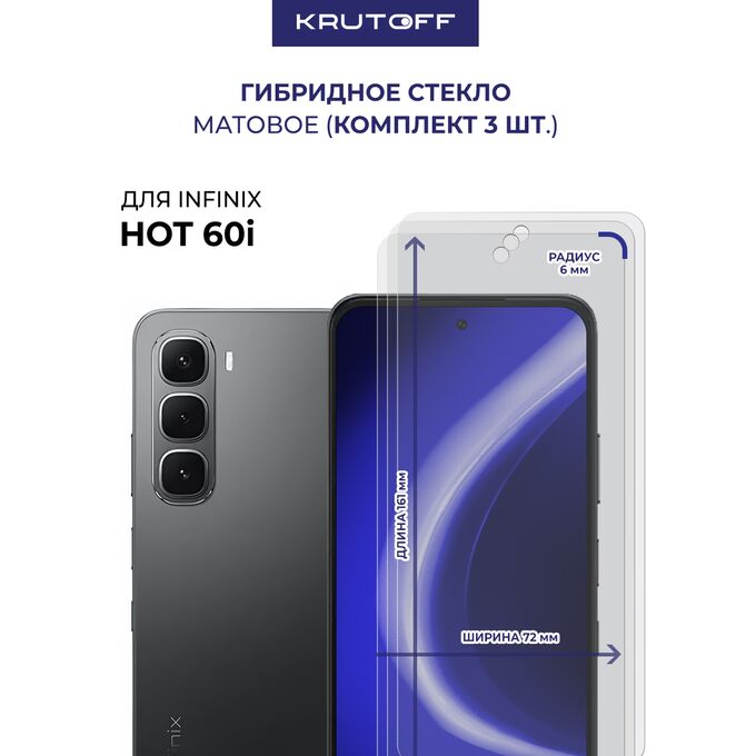 Комплект из 3-х защитных гибридных стекол МАТОВЫХ Krutoff для INFINIX Hot 60i