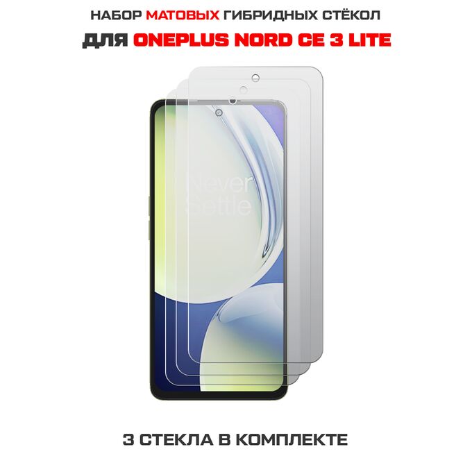 Комплект из 3-х защитных гибридных стекол МАТОВЫХ Krutoff для OnePlus Nord CE 3 Lite