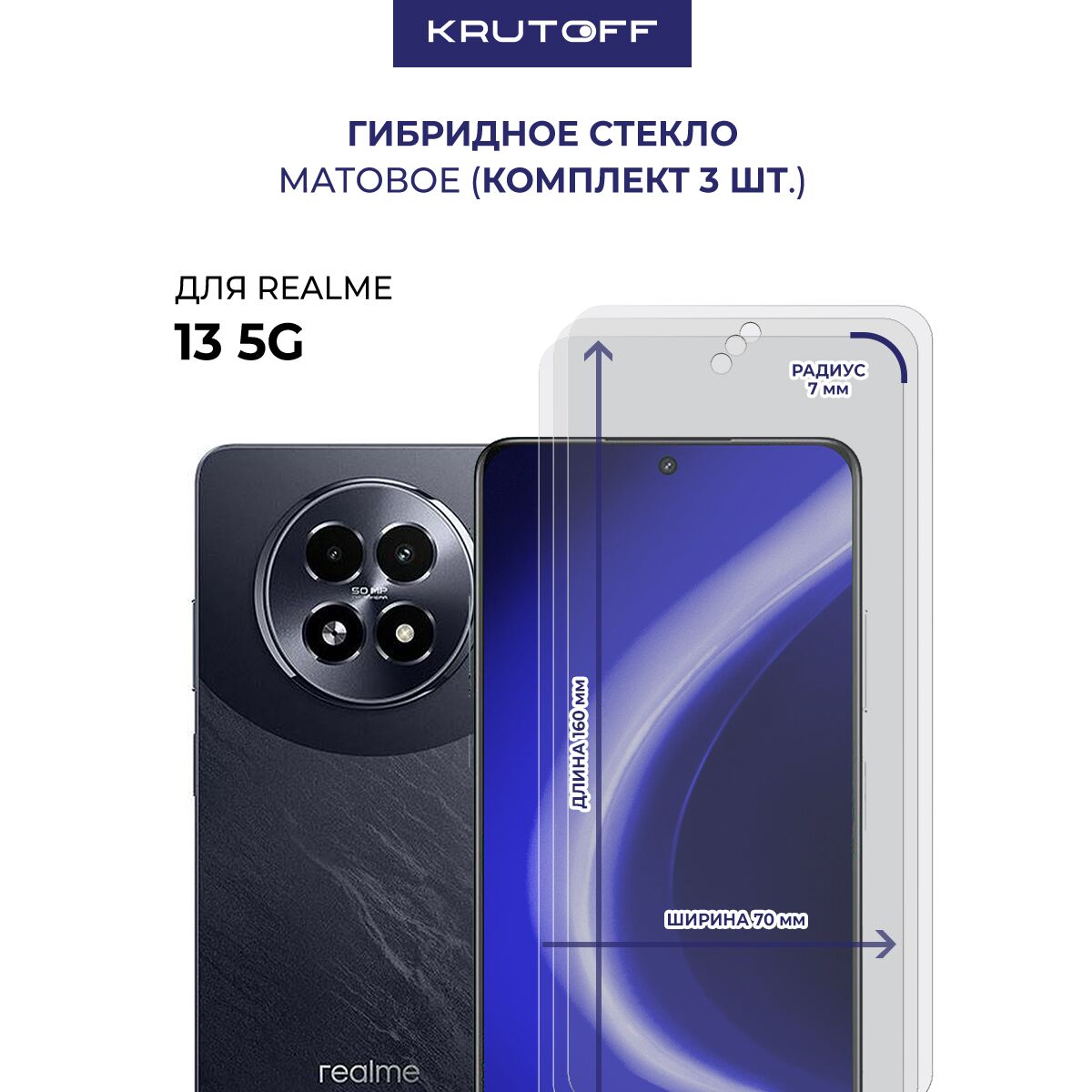 Комплект из 3-х защитных гибридных стекол МАТОВЫХ Krutoff для Realme 13 5G