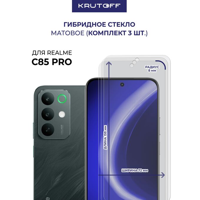 Комплект из 3-х защитных гибридных стекол МАТОВЫХ Krutoff для Realme C85 Pro