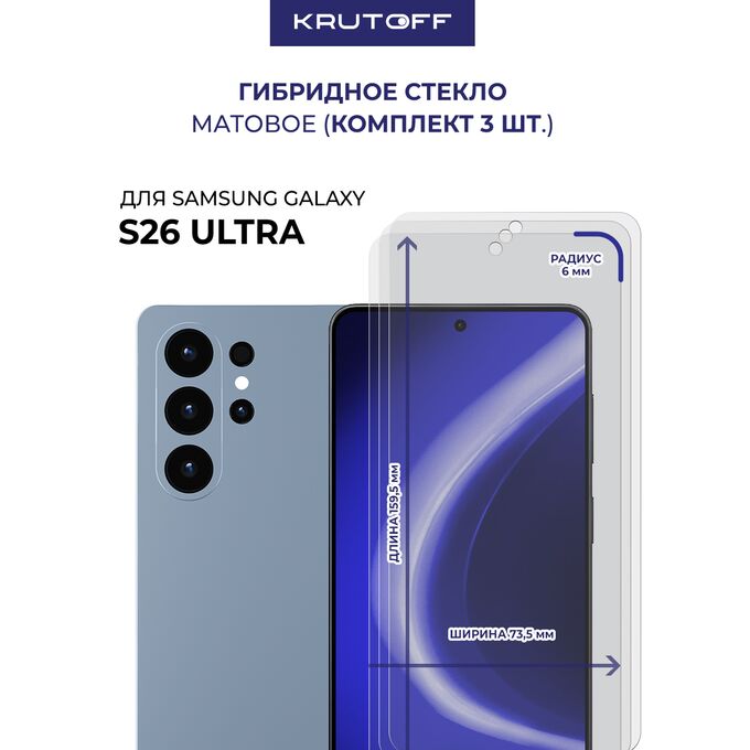 Комплект из 3-х защитных гибридных стекол МАТОВЫХ Krutoff для Samsung Galaxy S26 Ultra