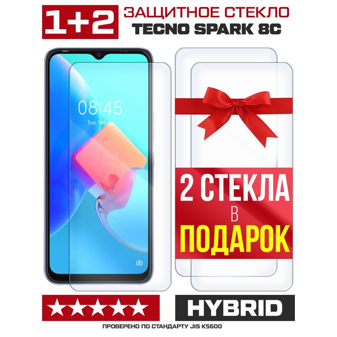 Комплект из 3-x защитных гибридных стекл для Tecno Spark 8C