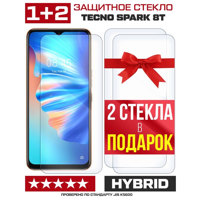 Комплект из 3-x защитных гибридных стекл для Tecno Spark 8T
