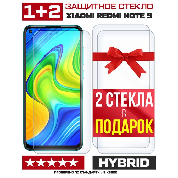 Комплект из 3-x защитных гибридных стекл для Xiaomi Redmi Note 9