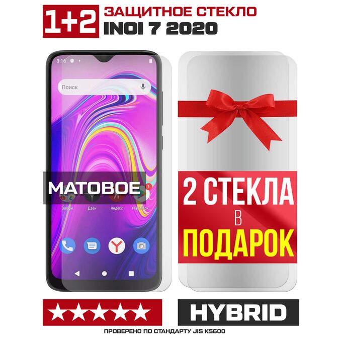 Комплект из 3-x защитных гибридных стекол МАТОВЫХ Krutoff для INOI 7 2020
