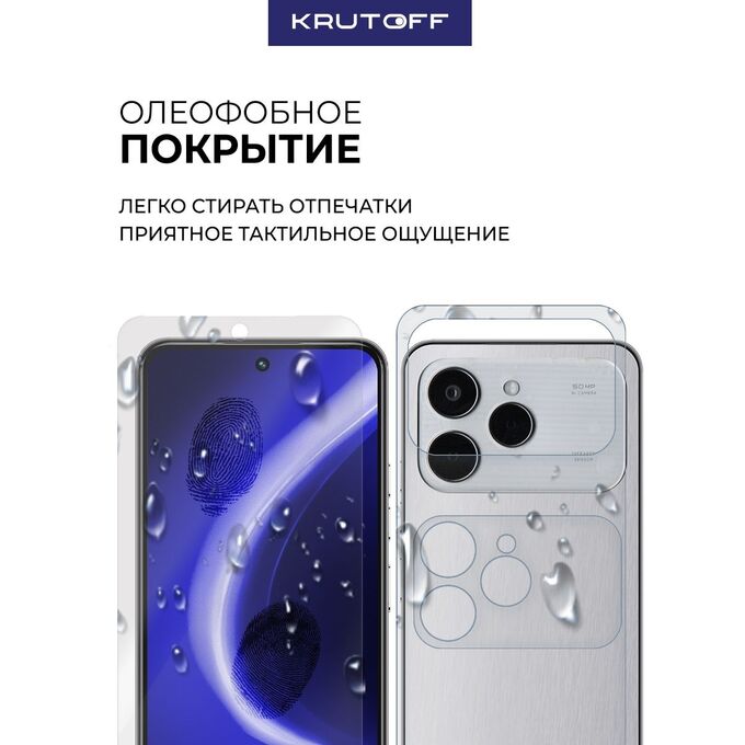Комплект из защитных гибридных стекол МАТОВЫХ Krutoff для TECNO Spark 40 перед/зад/камера