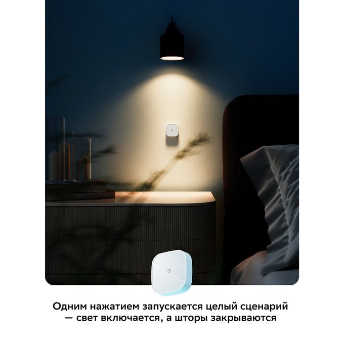 Автоматизируйте свои повседневные действия с помощью комплекта устройств умного дома Sber. В набор входят датчик открытия, датчик движения и умная кнопка. Умный хаб, к которому подключаются датчики — полезный подарок для каждого покупателя бандла. Статус датчиков можно отслеживать в приложениях Салют и СберБанк Онлайн, в веб-приложении, на умных устройствах с ассистентом Салют, а также с помощью голосового помощника Алиса. Настраивайте сценарии умного дома: например, пусть при движении на кухне там включается свет.