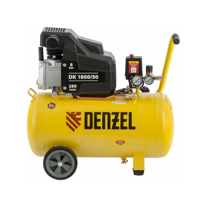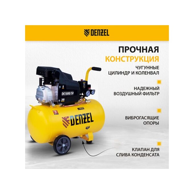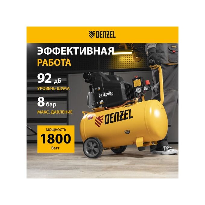 Воздушный компрессор DENZEL DK1800/50,Х-PRO 1,8 кВт, 280л/мин, 50л 58068 представляет собой силовой агрегат для выработки сжатого воздуха, который используется для обеспечения им пневмооборудования и инструментов. Данная модель имеет производительность 280 литров в минуту.