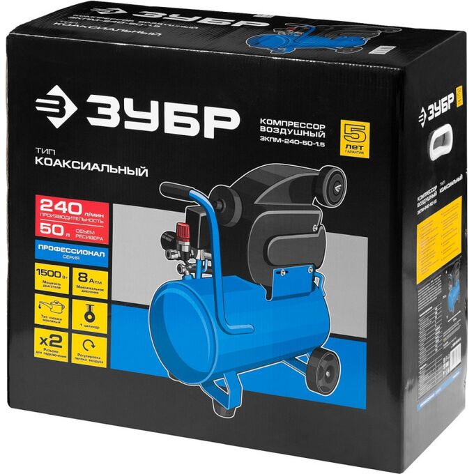 Компрессор Зубр Профессионал ЗКПМ-240-50-1.5 синий/черный