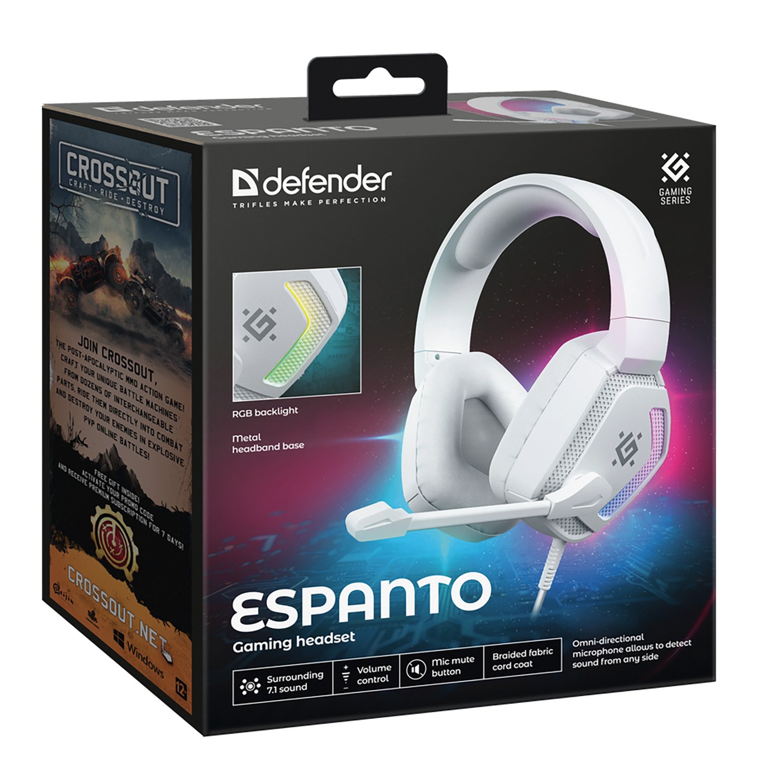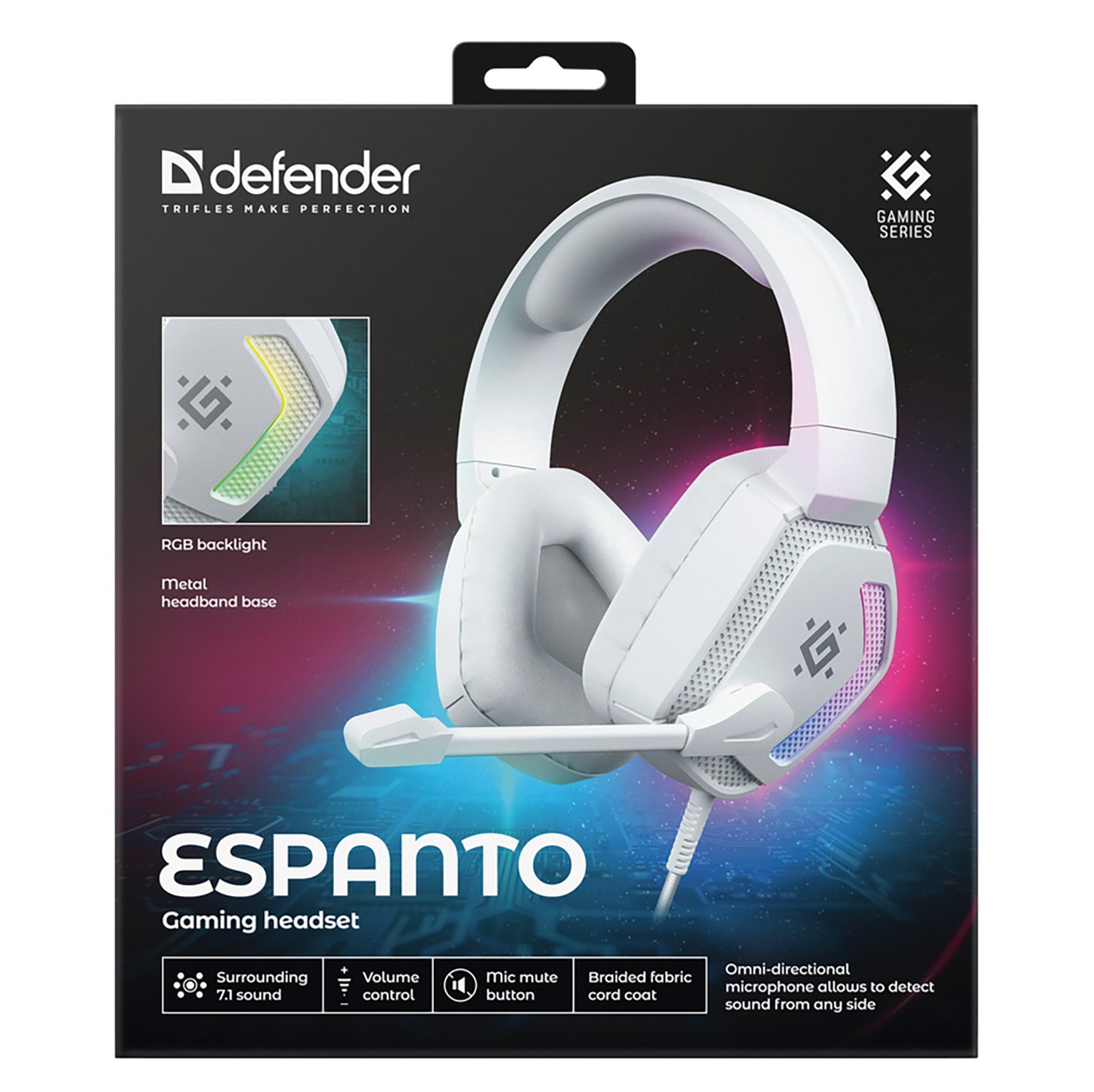 Компьютерная гарнитура DEFENDER Espanto, 7.1, RGB, провод 2 м (white) (241514)