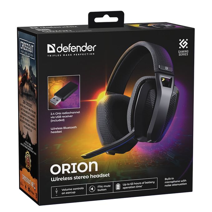 Компьютерная гарнитура DEFENDER Orion (Bluetooth,, 2.4G, микрофон с шумоподавлением) (bl (241509)
