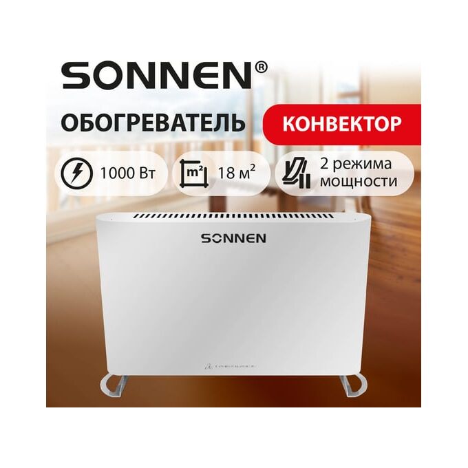 Конвектор SONNEN Onyx-1000.1, 1000Вт, Х-образный нагревательный элемент, белый, сделано в России, 457629