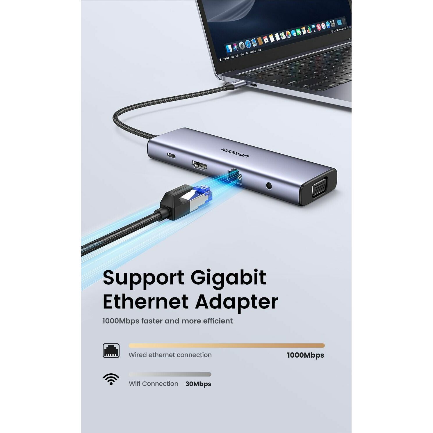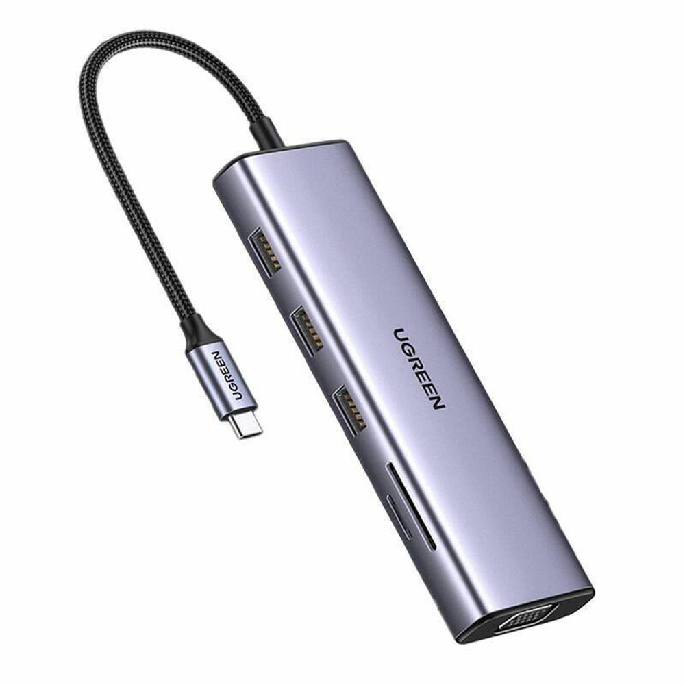 Конвертер UGREEN CM498 15601 USB-C To 3*USB 3.0 A+HDMI+VGA+RJ45 Gigabit+SD/TF+AUX3.5mm+PD Converter Gray